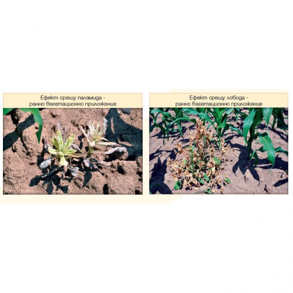 При заплевеляване с Бутрак (Xanthium spp.) и Паламида (Cirsium arvense), да се пръска след поникване на плевелите;